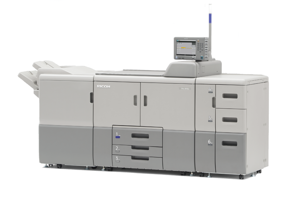The RICOH Pro 8110e MICR and Pro 8120e MICR cutsheet printers take production MICR printing to a new level. With a choice of two speeds, from 110 to 135 images per minute (ipm), they are designed for check and IRD printing environments that require high speeds to meet tight print windows — with an acquisition cost that traditional production MICR printers cannot match. They deliver superior MICR output quality, high speed, reliability and finishing capabilities, all at an exceptionally low cost per page.