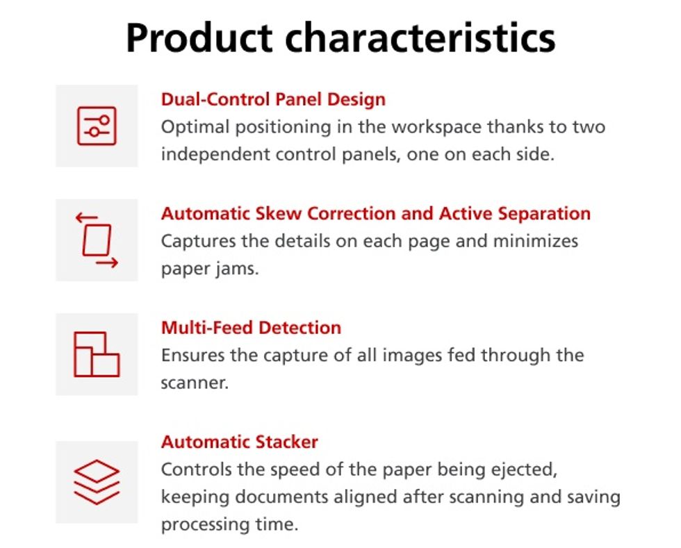 - Fast, double-sided scanning speeds of up to 100 pages per minute