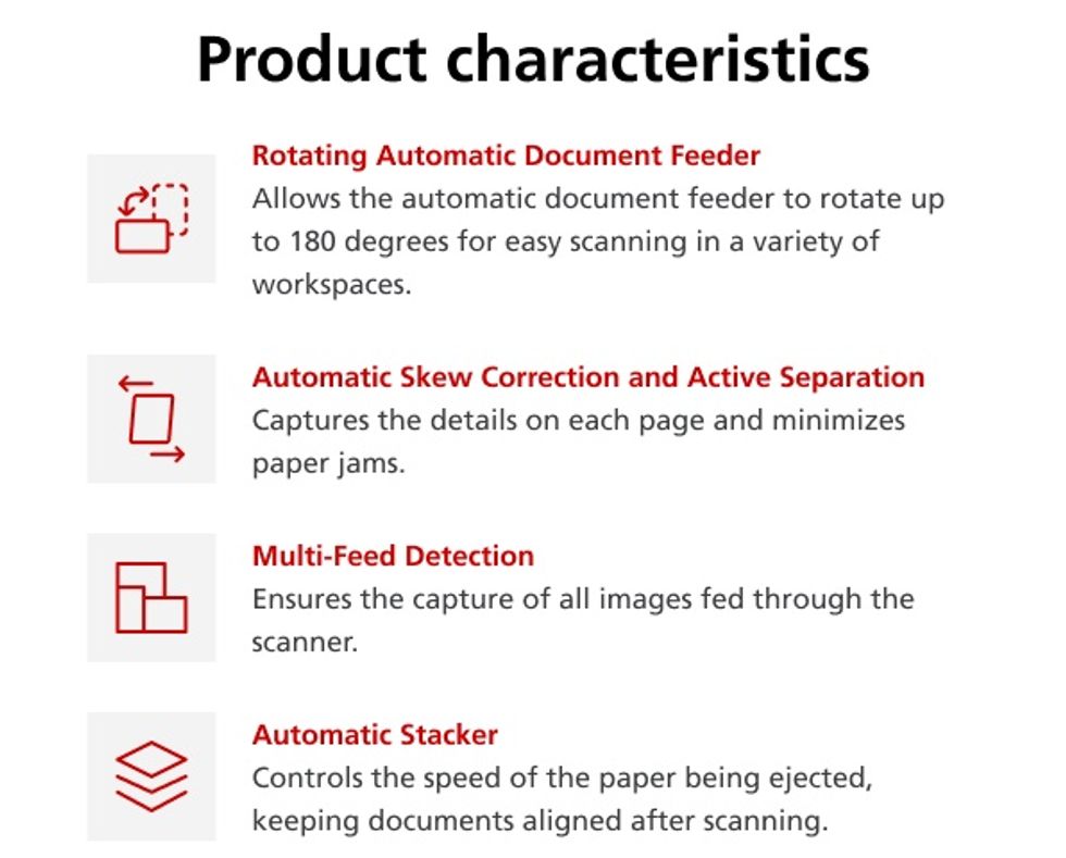 - Fast double-sided scanning speeds of up to 100 pages per minute