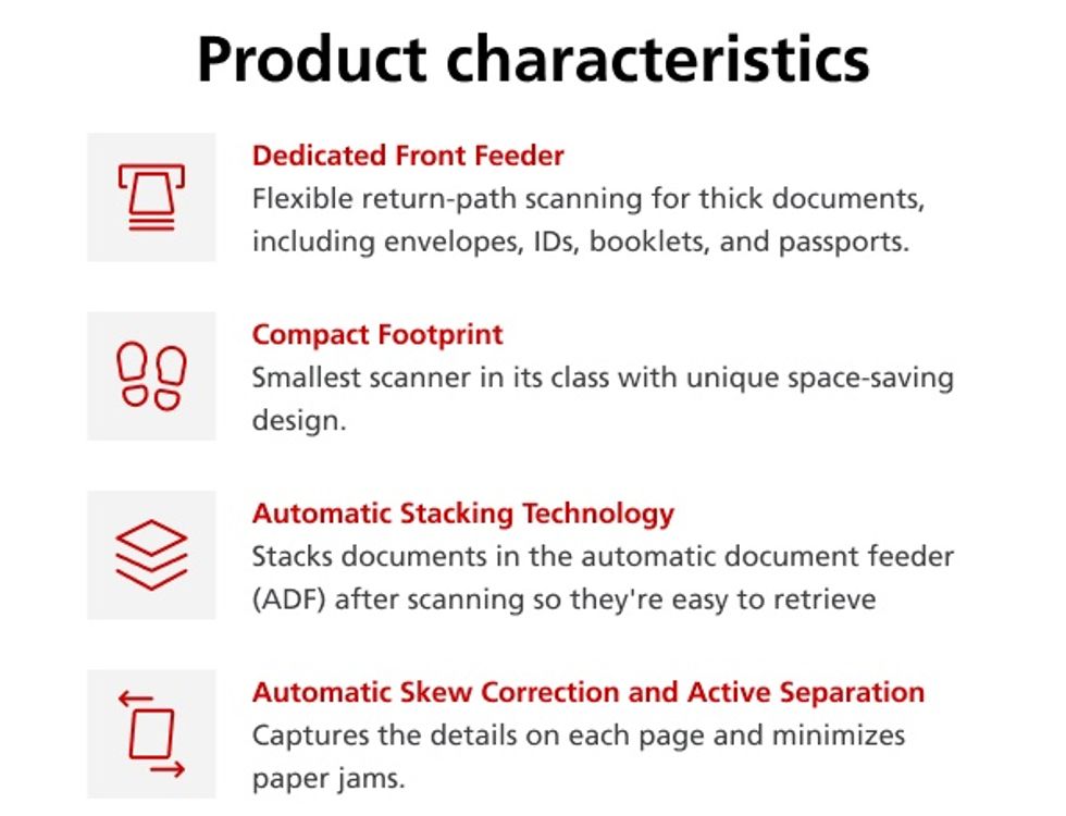 With its ultra-compact footprint and versatility, this award-winning* scanner saves valuable desktop space and makes it easy to scan a variety of documents, including envelopes, passports, and IDs, all without a carrier sheet.