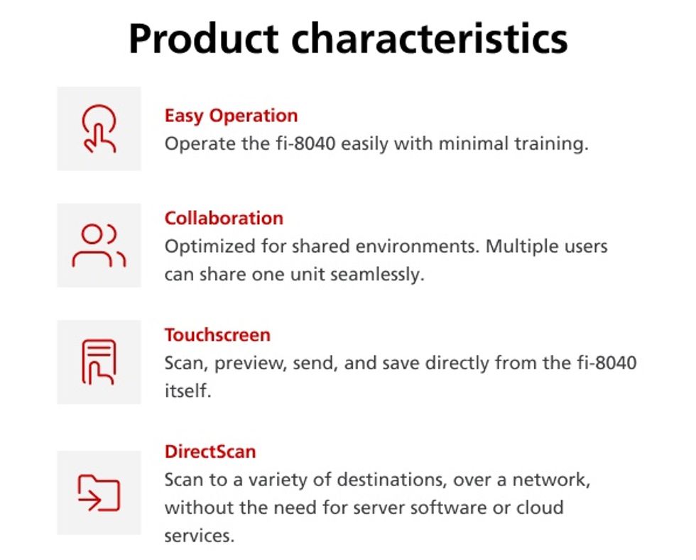 Achieve maximal results with minimal training. Scan, preview, and send documents to a variety of destinations with the fi-8040.