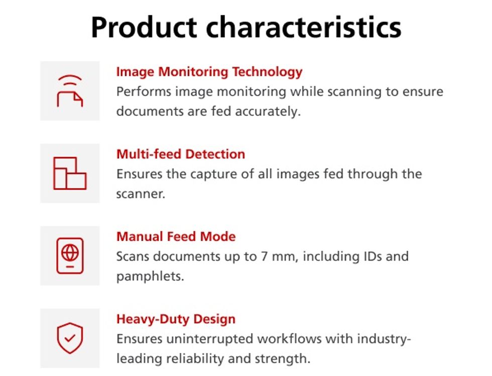 Captures a wide variety of documents consistently, streamlining mixed document batches and minimizing the need for re-scans.