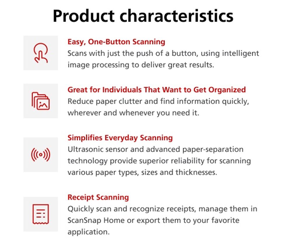 The ScanSnap iX1400 provides a hassle-free experience with one-touch scanning and fast, reliable performance day after day.