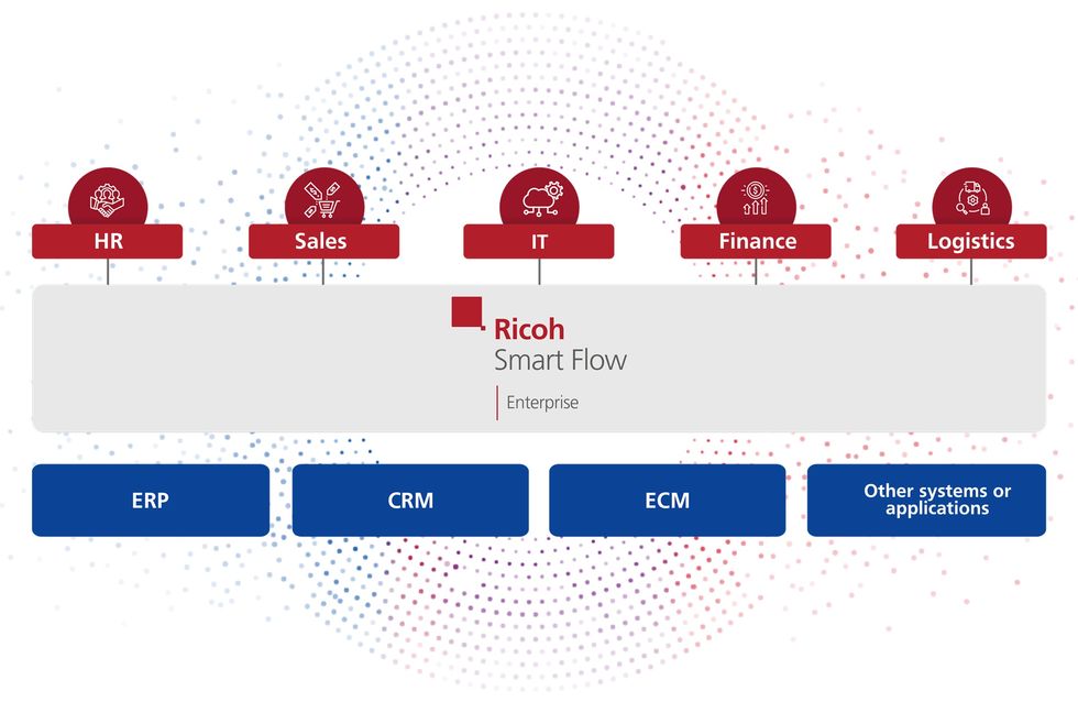 Ricoh Smart Flow Enterprise uses workflow rules to collect and store information from various backend systems.