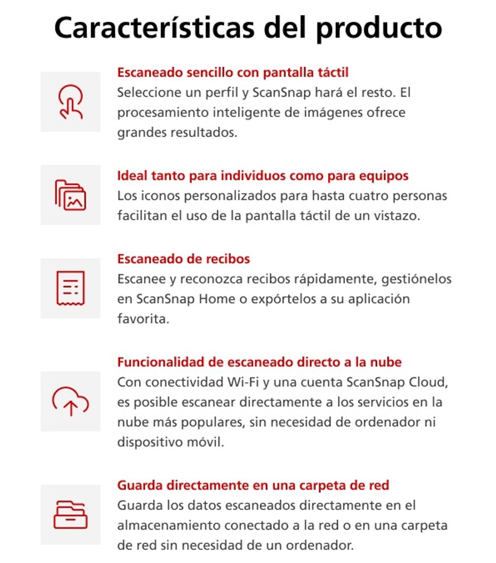 - Panel LCD a color para una fácil operación desde la parte frontal del escáner