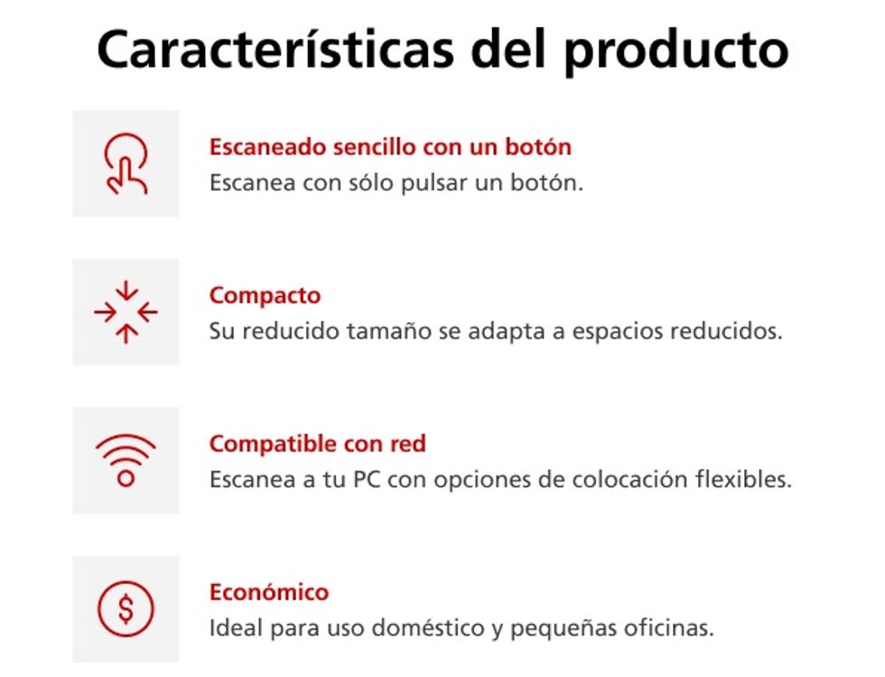 Este escáner compacto y compatible con la red es perfecto para el escaneo de nivel de entrada, personal y de pequeñas empresas.