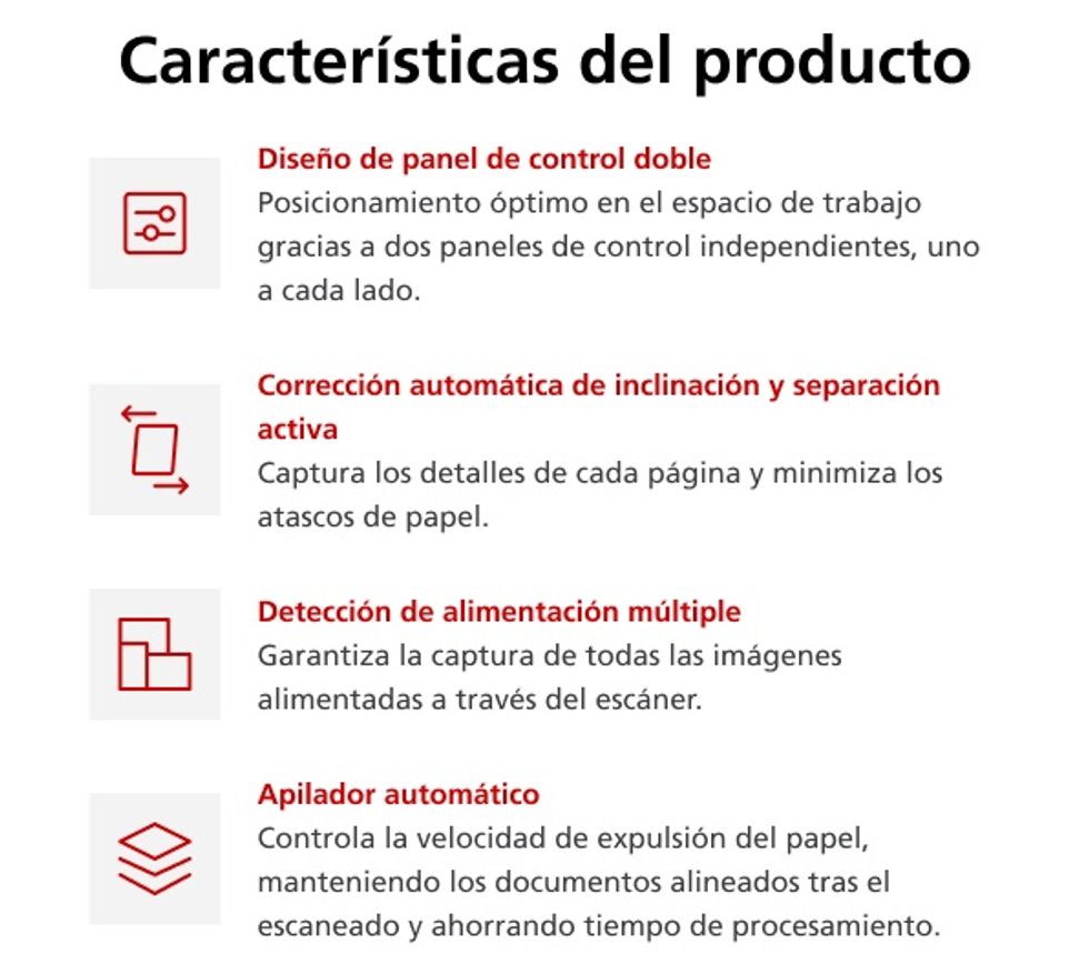 - Velocidades de escaneo rápidas a doble cara de hasta 100 páginas por minuto
