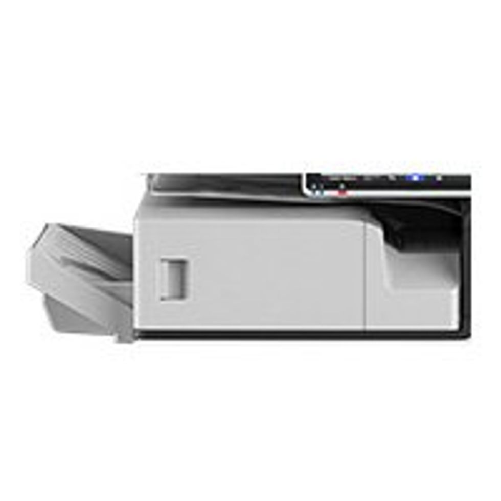 El finalizador interno de 500 hojas ofrece grapado multiposición y perforación opcional. Recomendado para oficinas con espacio limitado. Admite tamaños de papel de hasta 12" x 18". Peso: 28.2 lbs. (12,8 kg) Ancho × Fondo × Alto (pulgadas): 21,5 × 20,6 × 6,7 Ancho × Fondo × Alto (mm): 546 × 523 × 170