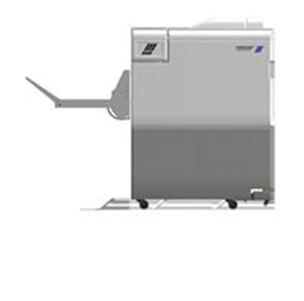 El equipo PBM350 puede engrapar y plegar hasta 35 hojas, lo que da como resultado un cuadernillo de hasta 140 hojas. Solo plegado simple. An. x Pr. x Alt. (pulgadas): 55.9 x 35.4 x 27.6 An. x Pr. x Alt. (mm): 1,420 x 899 x 701
