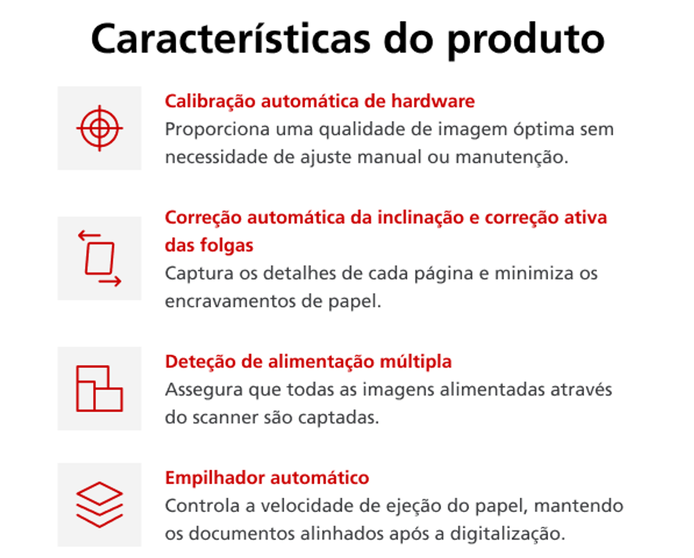 - Velocidades rápidas de digitalização frente e verso de até 100 páginas por minuto