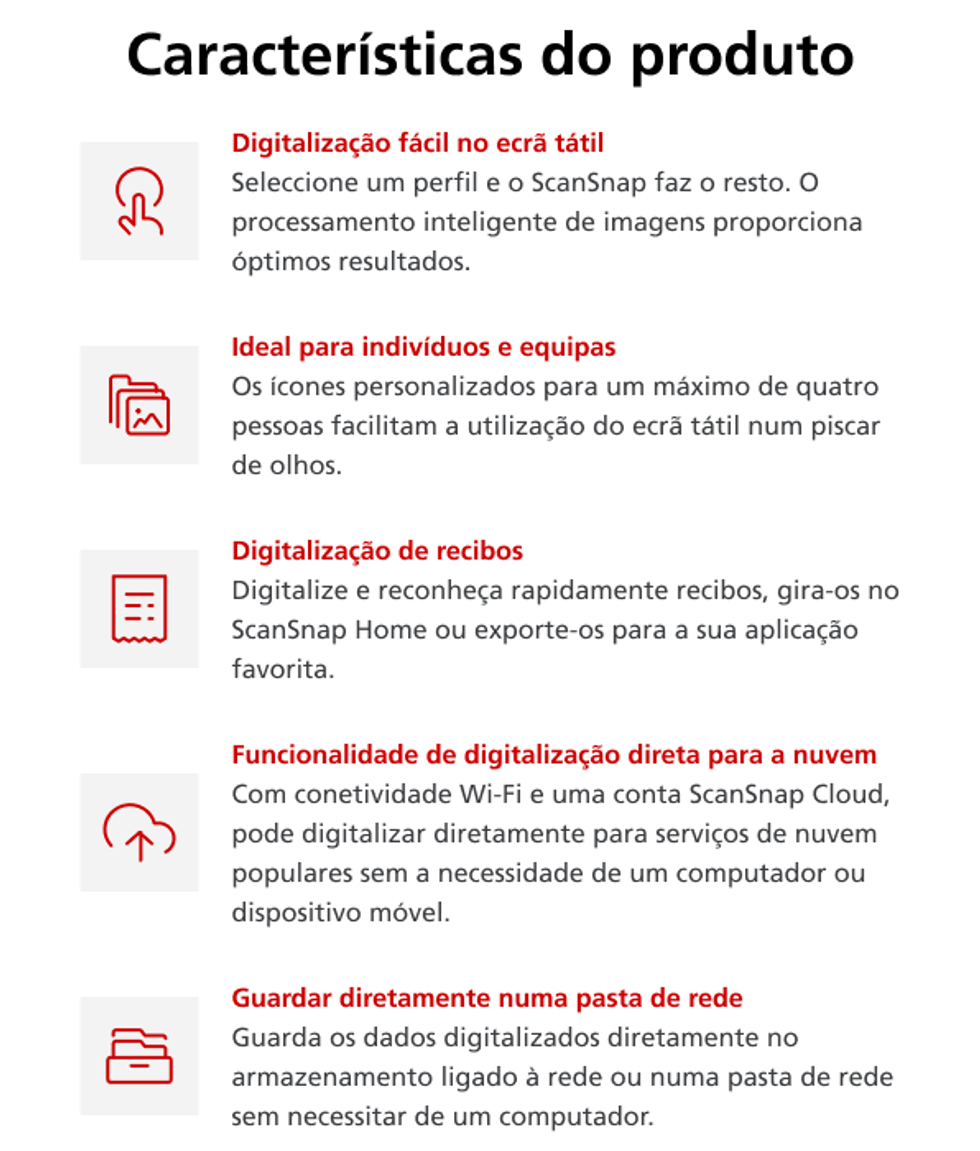O mais novo carro-chefe da família ScanSnap é 33% mais rápido*, proporcionando mais tempo no seu dia. Projetado para uso diário, o ScanSnap iX1600 digitaliza, organiza e envia documentos para qualquer lugar — a qualquer hora — com o mínimo de esforço.