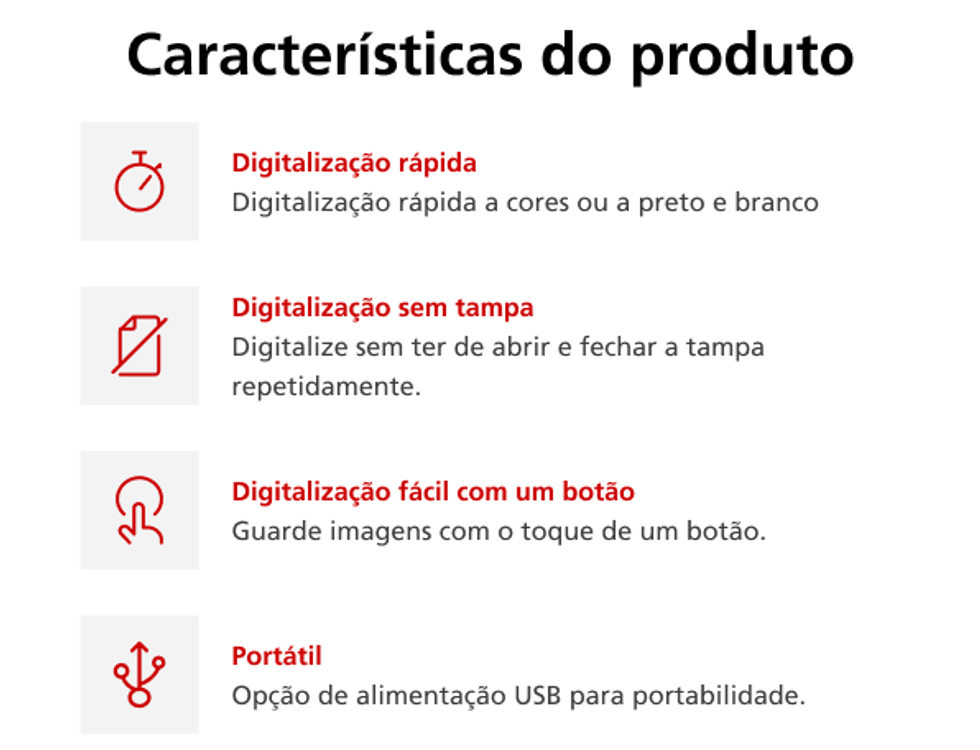 - Digitalize em qualquer lugar, sem necessidade de tomada A/C.