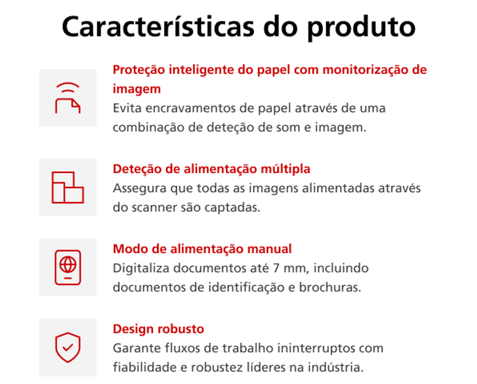 Captura uma grande variedade de documentos de forma consistente, simplificando lotes mistos de documentos e minimizando a necessidade de novas digitalizações.