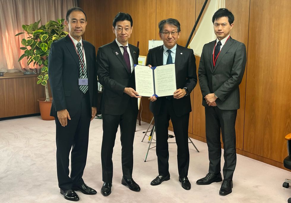 Tóquio, 22 de novembro de 2023 – A Ricoh anunciou hoje que Jake Yamashita, seu Chairperson y Co-Chair da Japan Climate Leaders' Partnership (JCLP)**, entregou uma proposta sobre a aceleração da descarbonização por meio da transformação verde a Yasutoshi Nishimura, Ministro de Economia, Comércio e Indústria e Ministro de Transformação Verde do Governo do Japão.